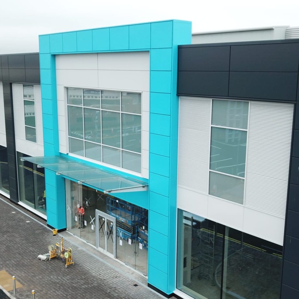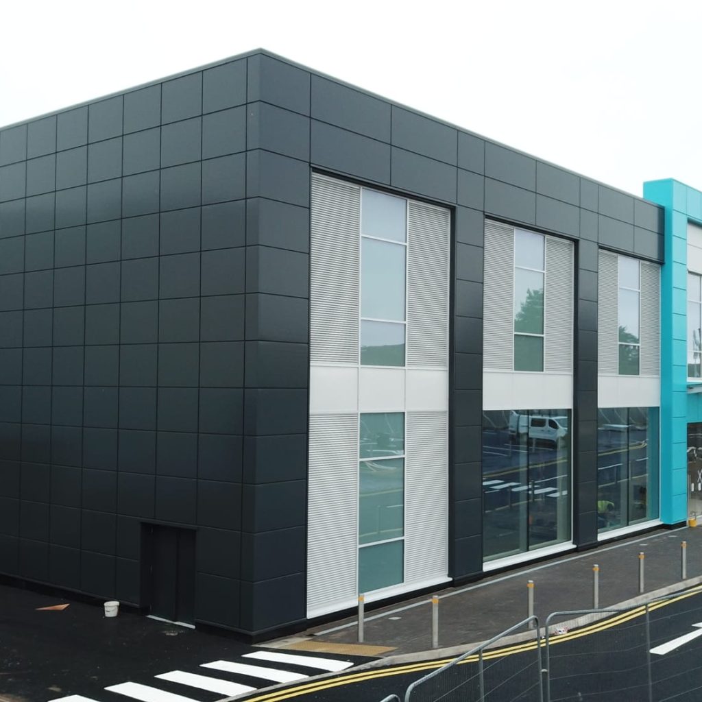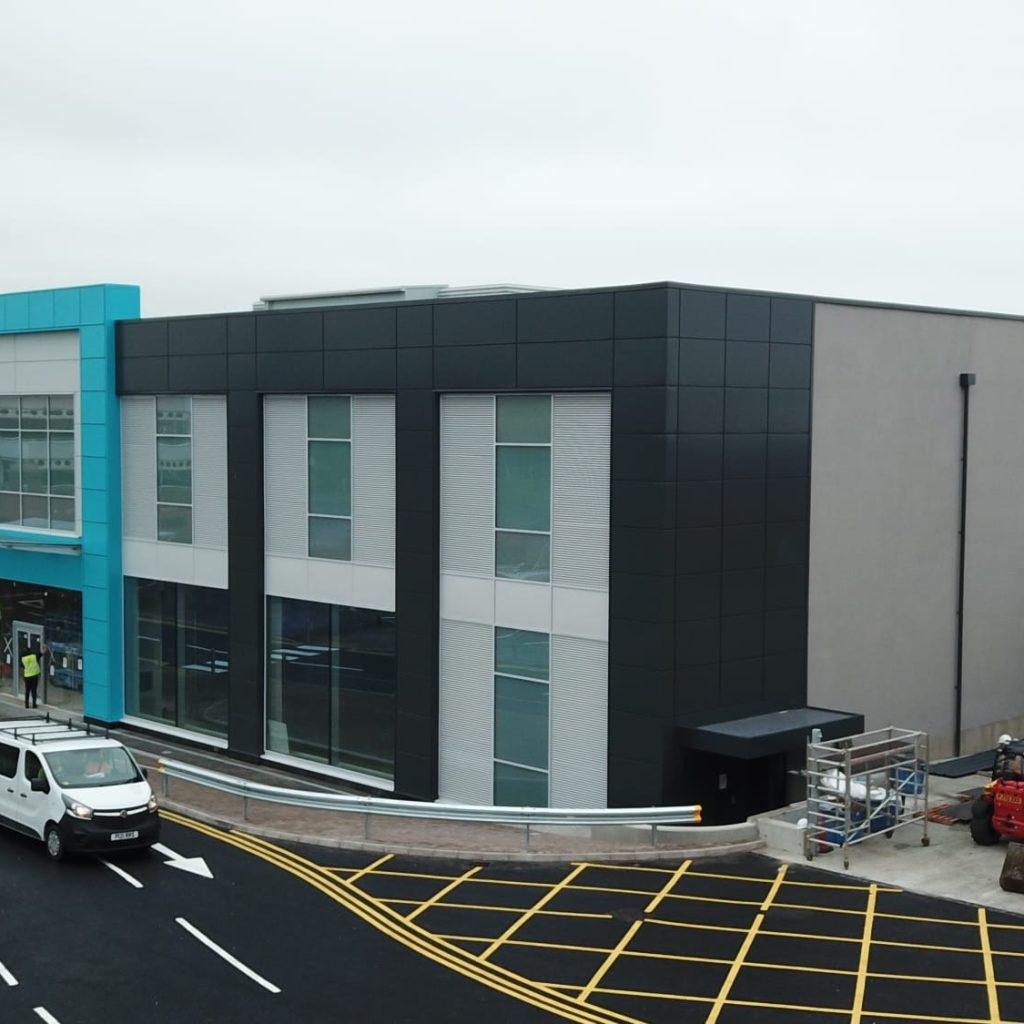 working in partnership with Cleary Contracting, the detail design and installation included Trimo Qbiss One architectural cladding, Trimoterm Invision wall cladding, PPC aluminium rainscreen panels, IKO single ply PVC membrane, metal deck and Strata Waterproofing built up felt roofing.